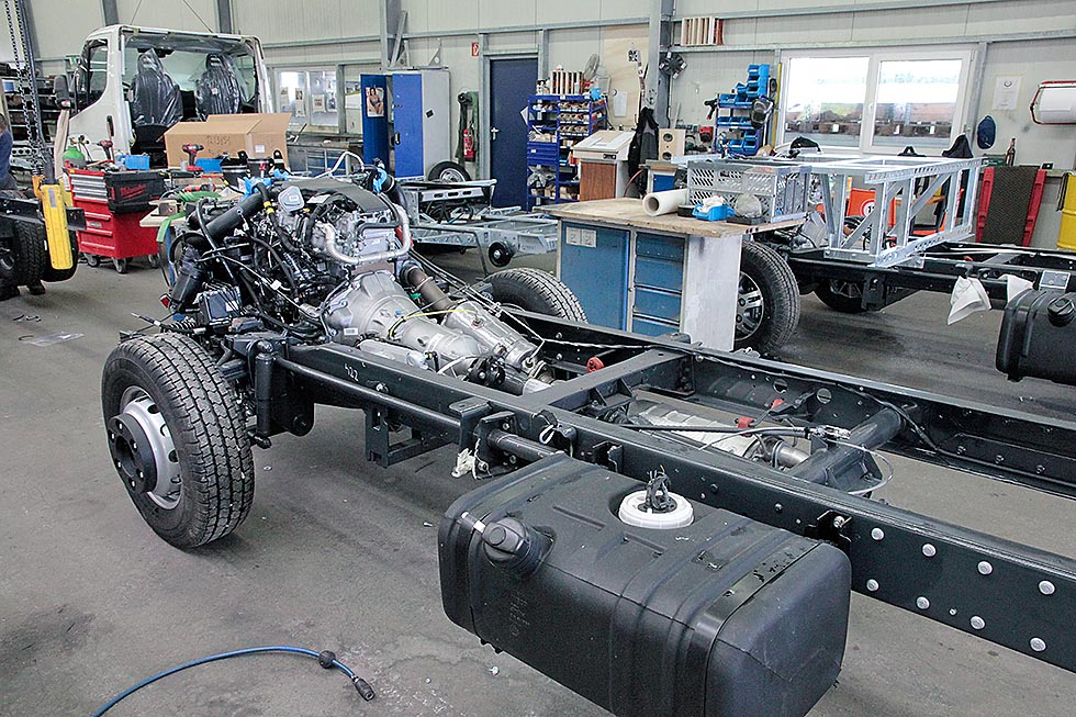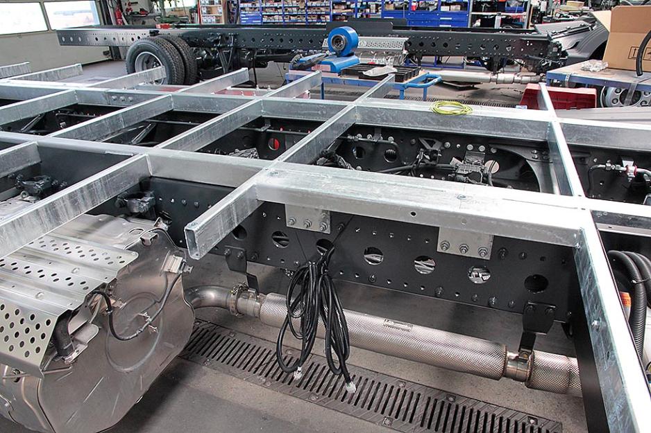 Concorde bruker Iveco eller Mercedes Atego lastebiler som chassis. Disse produsentene leverer ikke tilpassede chassis til bobilprodusenter - slik Fiat gjør. Derfor må Concorde demontere store deler av det nybyggede førermiljøet. Mye blir tatt vare på og selges, men store deler skrotes. Da Bobil & Caravan var på besøk hos Concorde stod det flere komplette førerhus på fabrikken til salgs. Det er mange karosseriforsterkninger som skal til for å bære boenheten på en Concorde. En stor avdeling på fabrikken jobber utelukkende med dette. Ikke bare skal karosseriet forlenges for å gi plass til garasjen, utallige støttepunkter til gulvet skrues fast til en solid enhet.