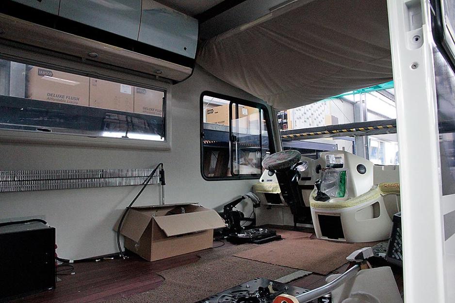 Man fjerner først alt fra karosseriet. Deretter setter man opp nytt isolerte gulv og isolerte lyddempede vegger uten kuldebro i utelukkende fuktavstøtende materiale.