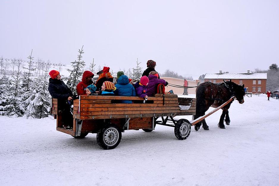 Området er ikke større enn at man kan haste gjennom på noen timer, men da får man ikke med seg stort. Straks vi kom inn på området, ble vi møtt av en gjeng glade nisser, som ønsket oss velkommen. Og de ledet oss også inn på både bakeri og bryggeri. Bakervarene smakte fortreffelig, ølet lot vi andre smake på. Ikke fordi at det var noe feil på ølet, men vi har den meningen at når man kjører, og bor, i bobil, ja da skal minst sjåføren være edru. Punktum. Videre innover «markedsplassen» var det julegaveideer i fleng, og smaksprøver fra lokale produsenter, som hadde med seg produkter man ikke finner andre steder. Særlig falt vi for lokale bakervarer, som lefse og klinning, (en type flatbrød). Rundt om var det smånisser og julestemning både i stall og stue. Særlig var kanefarten noe som så ut til å glede de minste, hesteskyss er ingen selvfølge i dag.