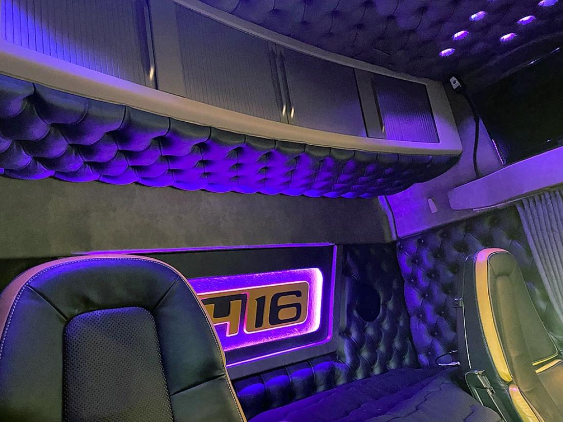 – Vi innreder sjåførdelen og sengeområdet. Da monterer vi gjerne led-lys i alle farger, lydanlegg, videoanlegg, kjøleskap, mikrobølgeovn og en liten fryser. Vi fikser ulike typer trekk og paddinger, i alle farger og materialer. Ønskes det aircondition som fungerer også når motoren ikke er i gang, leverer vi også det, forteller Henjo til Din Fritid.