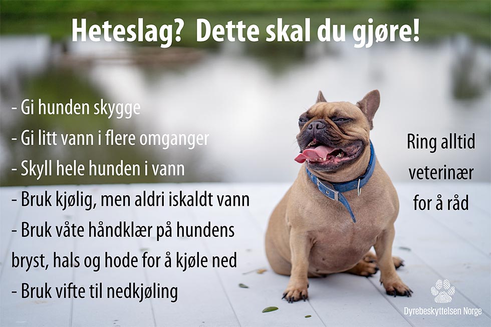 – Heteslag kan komme snikende og det er ikke alltid så lett å oppfatte at hunden sliter i varmen. Derfor har vi laget en illustrasjon som vi håper kan forbygge heteslag. En studie viser at de tre rasene som sliter mest er chow chow, engelsk bulldog og fransk bulldog, sier Roaldset.