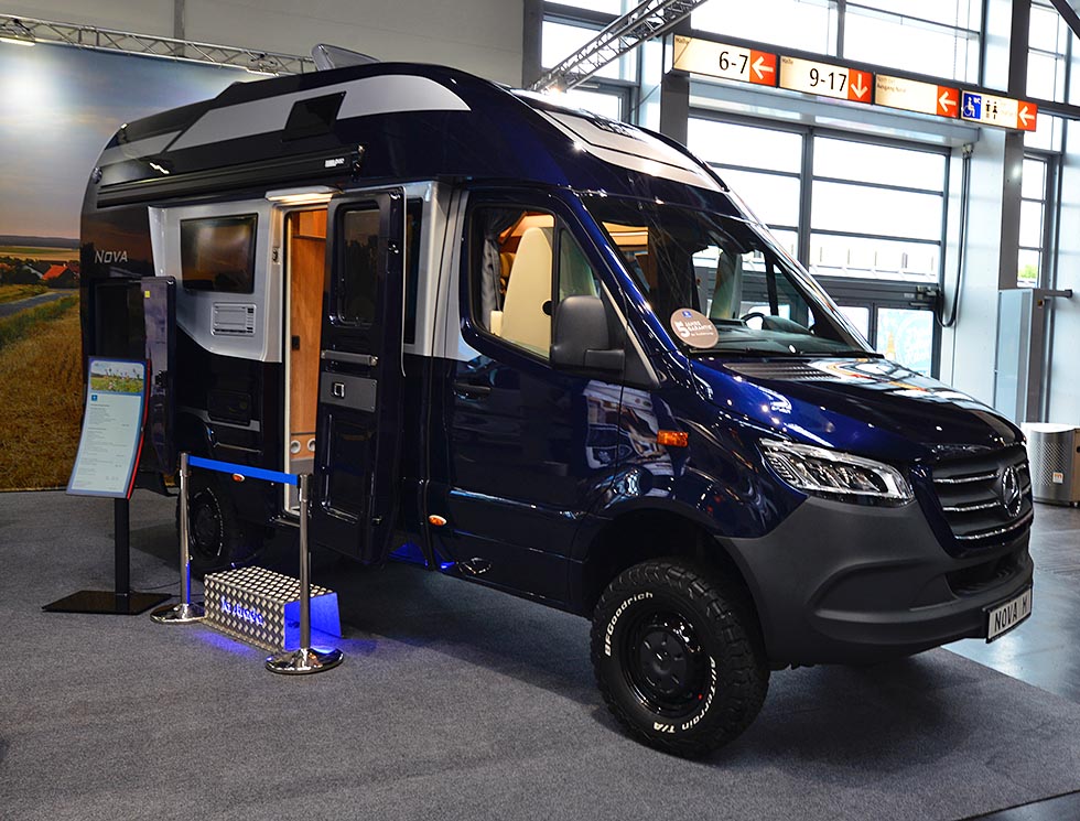 Caravan Salon 2020: Dette er en bobilmodell som leverer i en egen klasse. Bodelen er helstøpt, med en utrolig høy finish. Basisbilen er en Mercedes Sprinter, gjerne i 4x4-versjon. I Düsseldorf var det tid for å vise frem den kortere modellen, kalt M, med en tverrstilt enkeltseng bak og en langsgående dobbeltseng over sittegruppen.