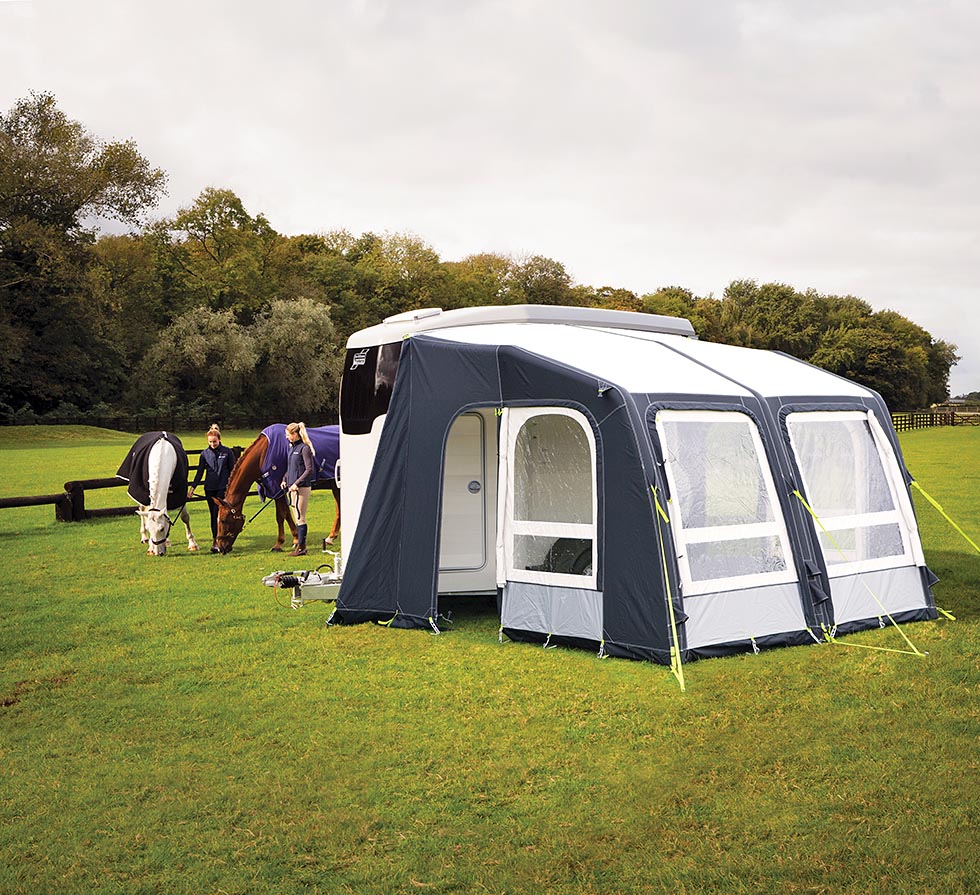 Forteltet som veier rundt 20 kilo, er tilgjengelig i to størrelser og dermed mulig å få levert til hele Ifor Williams sin HBX-serie. Forteltet monteres enkelt ved å blåse opp de syv luftkanalene fra ett innblåsningspunkt, enten manuelt eller ved hjelp av en elektrisk pumpe. Vips, så kan rytterne slappe av og overnatte ved arrangementer, show og turer. Enkelt, billig og veldig smart.