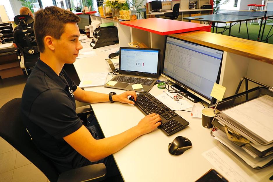 – Jeg er klar for mer ansvar og trives med oppgavene her. Det er ekstra stas at det ble ledig et hjørnekontor med vindu, to store skjermer og en egen arbeidsplass. Her har jeg det supert, men før jeg kan sette meg ned må jeg rydde på lageret og sjekke om det er nok deler til butikk og verksted. Nå ser jeg fram til sju ukers arbeidserfaring hos Stamsaas, smiler han ivrig. Han kan fortelle at arbeidsoppgavene er variert, butikkhyllene skal alltid bugne av varer og han er i tillegg ansvarlig for å ta imot vareleveringer.
