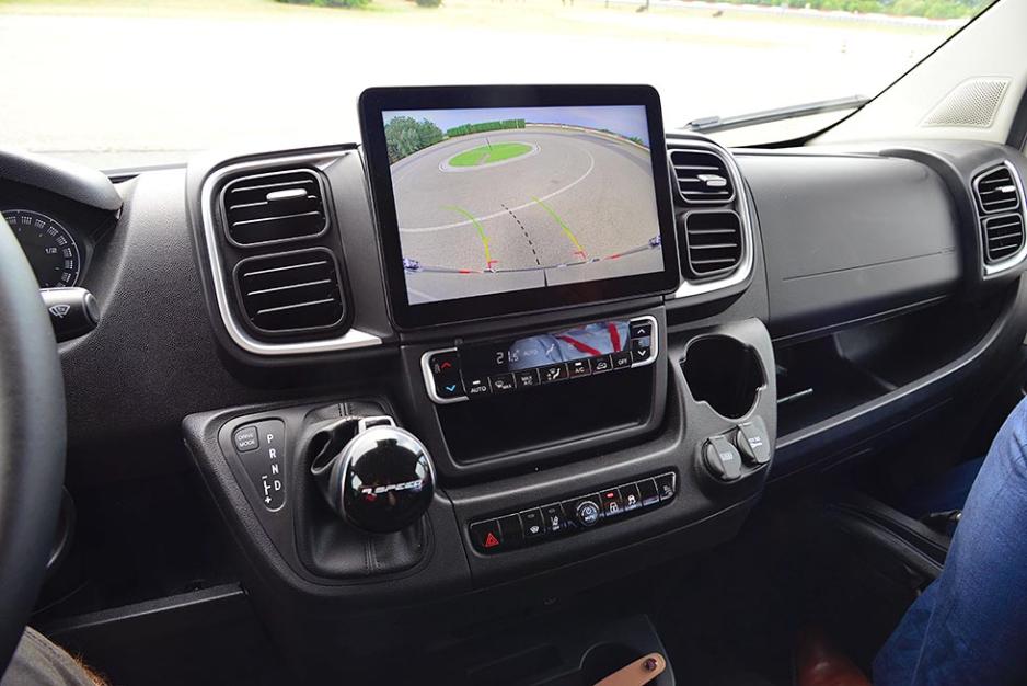 Jeg tror alle er enige om at Fiat Ducato har hatt behov for et nytt interiør. Det har i utgangspunktet vært uendret siden lanseringen. Men nå har det skjedd ting. Mykere formspråk, høyere materialklasser og virkelig fine skjermer. Spesielt den største på 10” er imponerende. Bakspeilet viser et klart og tydelig bilde av hva som er bak bilen mens du kjører, og er gull verdt. Det er ikke et ryggekamera, det finner du i den sentrale skjermen.