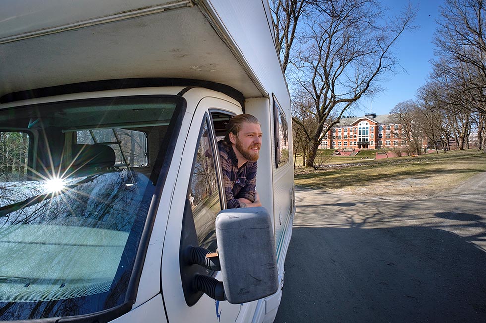 Noen mener at jeg velger bort viktige elementer ved studentlivet når jeg bor i bobilen og ikke på hybel, men jeg er ikke enig. Jeg kan delta på alt jeg ønsker. Jeg har også mulighet for å parkere på campus i 24 timer, forteller Linas.
