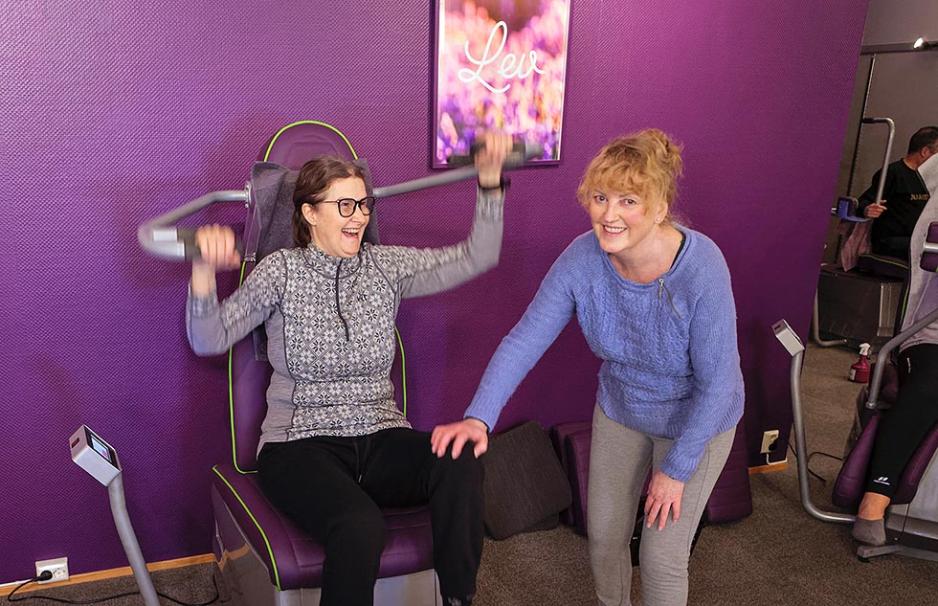 – Konseptet her passer oss bedre enn et vanlig treningssenter, og så er det så deilig at det ikke er noe musikk her. Det er trivelig her og Magni er fantastisk kul, snill og grei. Jeg synes hun er skikkelig tøff. Å selge huset og flytte inn i en campingvogn hadde jeg aldri turt, avslutter Elin i det hun går fornøyd til neste øvelse.