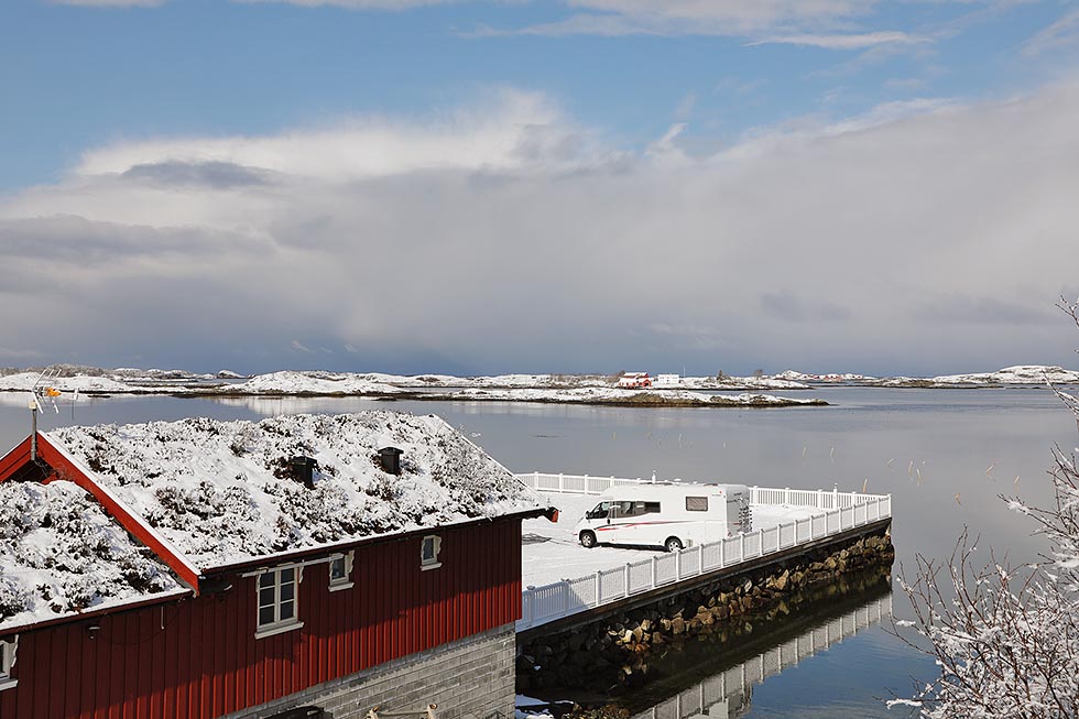 Selve overrekkelsen av plaketten skjedde utendørs ved resepsjonen, midt mellom to snøfall. Etter en fotoseanse ble alle invitert over til naboen, som er Bjartmars Kro. Her ble det servert hjemmelagde rundstykker, kaffe og kake. Nettopp det at bobilplassen er så tett på serveringsstedet, gjør den enda mer attraktiv. Selv om det skal sies at plassens største fortrinn er nærheten til naturen og ikke minst havet.