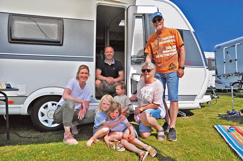 Campingturen kunne ikke vært mer vellykket, mener familien Tiben og Thorsen. Med glade, sommerkledde unger tok de turen til solskinnet på Grebbestad Fjorden Camping på Sveriges vestkyst.