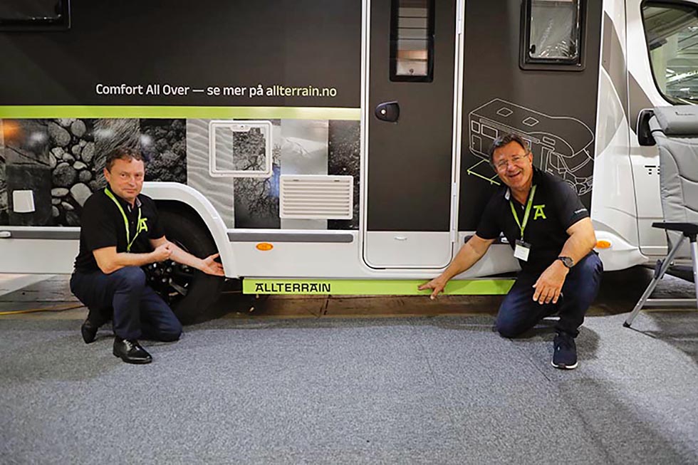 Du har til tider kanskje sett litt misunnelig bort på fastliggervogna med sin platting, når du tråkker rundt i vått gress, og som nå på høstparten kanskje minner mer om leire og jord? Vel, det er det ifølge Frode Hofsnæs Larssen og Tor Arne Hauge mulig å gjøre noe med. Deres egenutviklede produkt Allterrain er en platting for bobil som ble lansert på Caravanmessen 2022. Vi fikk en demonstrasjon.