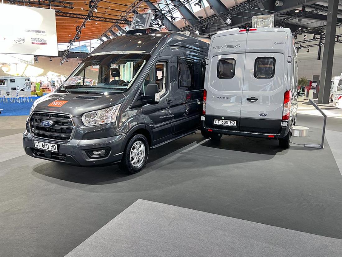 På bobilsiden er det ingen produsenter som har flere chassis å by på enn Knaus. Messens nyhet betyr at det vi kjenner som lillebror, Weinsberg, har et like stort utvalg. Foran et samlet pressekorps ble nemlig Ford-baserte versjoner av bybobil-seriene Weinsberg CaraTour og Carabus avduket. Seriene bygges normalt på Fiat. Foreløpig er det to modeller i hver serie som nå kommer på Ford. Vi blir ikke overrasket om det dukker opp flere til 2024-sesongen.