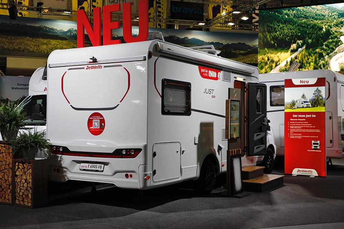 Det er ikke lenge siden Dethleffs lanserte sine første bobiler på Ford Transit-plattformen. Nå utvides utvalget med to nye modeller i deres kompakte Globebus-serie. Modeller basert på Ford får navnetillegget Go hos Dethleffs. Globebus Go T15 (lengde 599 cm) og T45 (lengde 669 cm) er begge 220 cm brede. Førstnevnte har tverrstilt dobbeltseng, mens sistnevnte er nok mer aktuell for det norske markedet med sine enkeltsenger. Interiøret på utstillingsmodellen var en blanding mellom tradisjonelt treverk og mørkegrå flater, i kombinasjon med en frisk blåfarge.