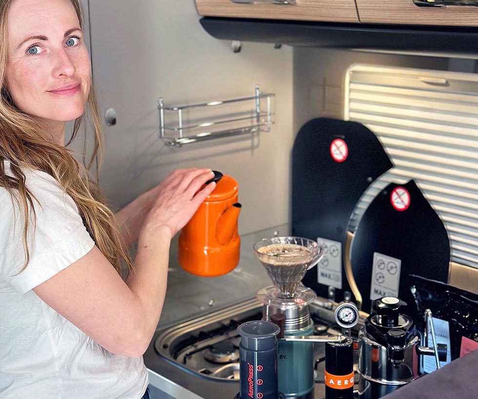 Folk har ulike krav til sin kaffe. Er du av de som ønsker kvalitet, trenger du ikke å fire på kravene selv om du er på tur med bobil eller vogn. Det er mange ulike måter å brygge kaffe på, og jeg har tatt for meg fire ulike metoder, der alle krever kun et gassbluss til å koke vannet. Vi har ikke testet ut automatiske kaffemaskiner eller pulverkaffe.