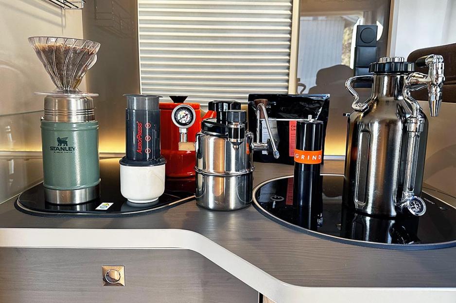 Dette er kanskje for de spesielt interesserte, men du verden så godt det smaker med kald kaffe på en varm sommerdag i solveggen ved bobilen. Vi har prøvd ut Ukeg Nitro kald kaffe, som er noe så uvant som en kaldkaffebrygger. Den langsomme bryggingen (12-24t) kan skje på selve kannen, som har et trykk-system som gjør det lett å tappe seg en kopp kald kaffe. Den dobbeltisolerte beholderen av rustfritt stål holder kaffen kald, frisk og kremet i minst to uker.
