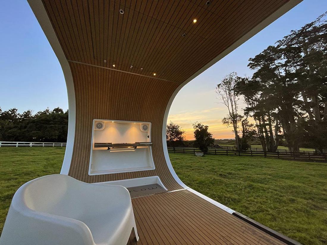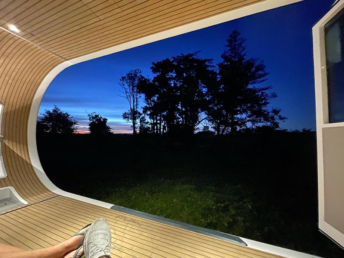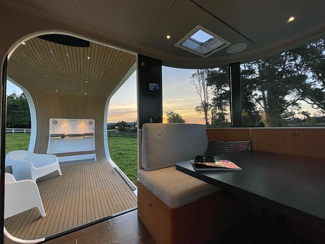 Nå settes vogna i produksjon, og det er mulig å bestille seg et eksemplar. Vi har testet ut bestillingsskjemaet, og du kan velge mellom dobbeltseng eller enkeltsenger. Men det er langt flere valg også, for eksempel om du vil ha doble vinduer, om du vil ha en skylight takluke over salongen, du kan få markise, sammenleggbar sittegruppe som kan plasseres om bord når du kjører, du kan få en såkalt premium finish, elektrisk betjent senkeseng, teppe, 32" nedsenkbar TV, ekstra TV på soverommet, oppgradert multisoners lydanlegg, ryggekamera, wifi-ruter, utvendig projektorskjerm og bærbar projektor, luftfjæring, aircondition, ekstra litiumbatterier, 230 V-inverter, solcellepanel. Taket er i syntetisk teak, og de buede panoramavinduene i fronten er 6 mm herdet glass.