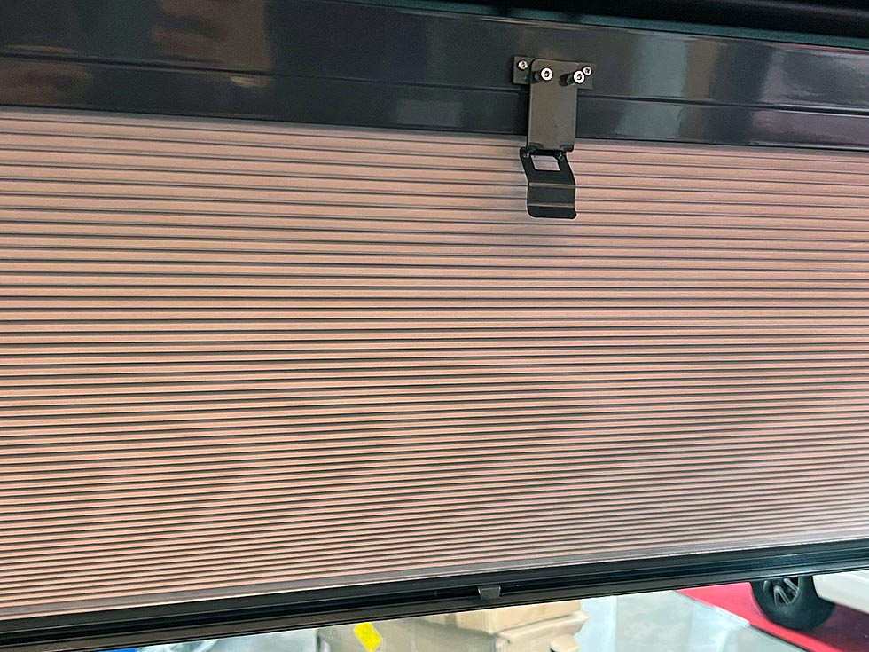 Raskt var det av med bilbeltet så jeg kunne strekke meg frem til frontruta og få blendingsgardinen opp på plass igjen, før jeg kunne fortsette videre. Disse sekundene med bobilen helt i ro føltes som en evighet… På første mulige avkjøring svingte jeg inn og fikk ned pulsen. Samtidig ble blendinggardinens opphengsbrakett nøye gjennomgått. For sikkerhets skyld sikret jeg den ved å binde den opp med en ledningsbit.