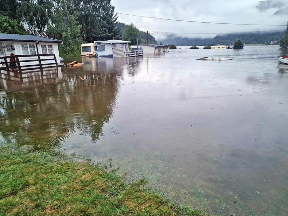 – Jeg måtte be alle som ringte om å ikke komme. Det var meldt så stygt vær at jeg forstod at de risikerte å bli innesperret her, mellom fjellet og elva, sier Hamid Lutfi. Han eier og driver Liodden camping ved Hallingdalselva.