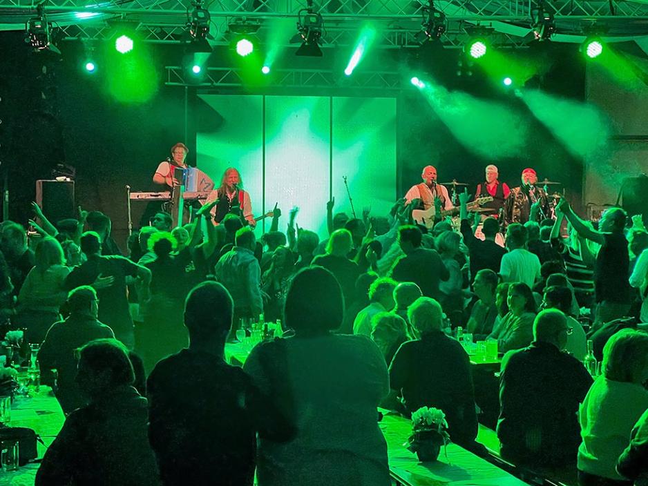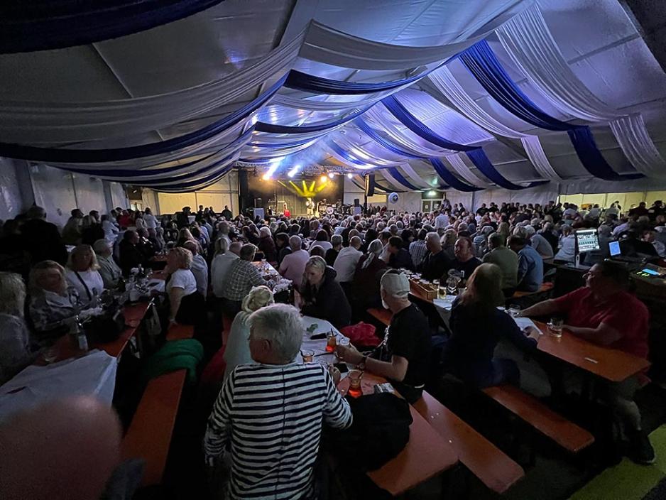 Hele messehelgen var det salg av mat og drikke i et stort telt. Lørdagen ble avsluttet med en fest her. Bandet Münchner Zwietracht entret scenen og satte stemningen meget raskt. Litt uvant for en traust norsk journalist med allsang og tyske drikkeviser, men det ble en skikkelig jovial og trivelig oktober-fest.
