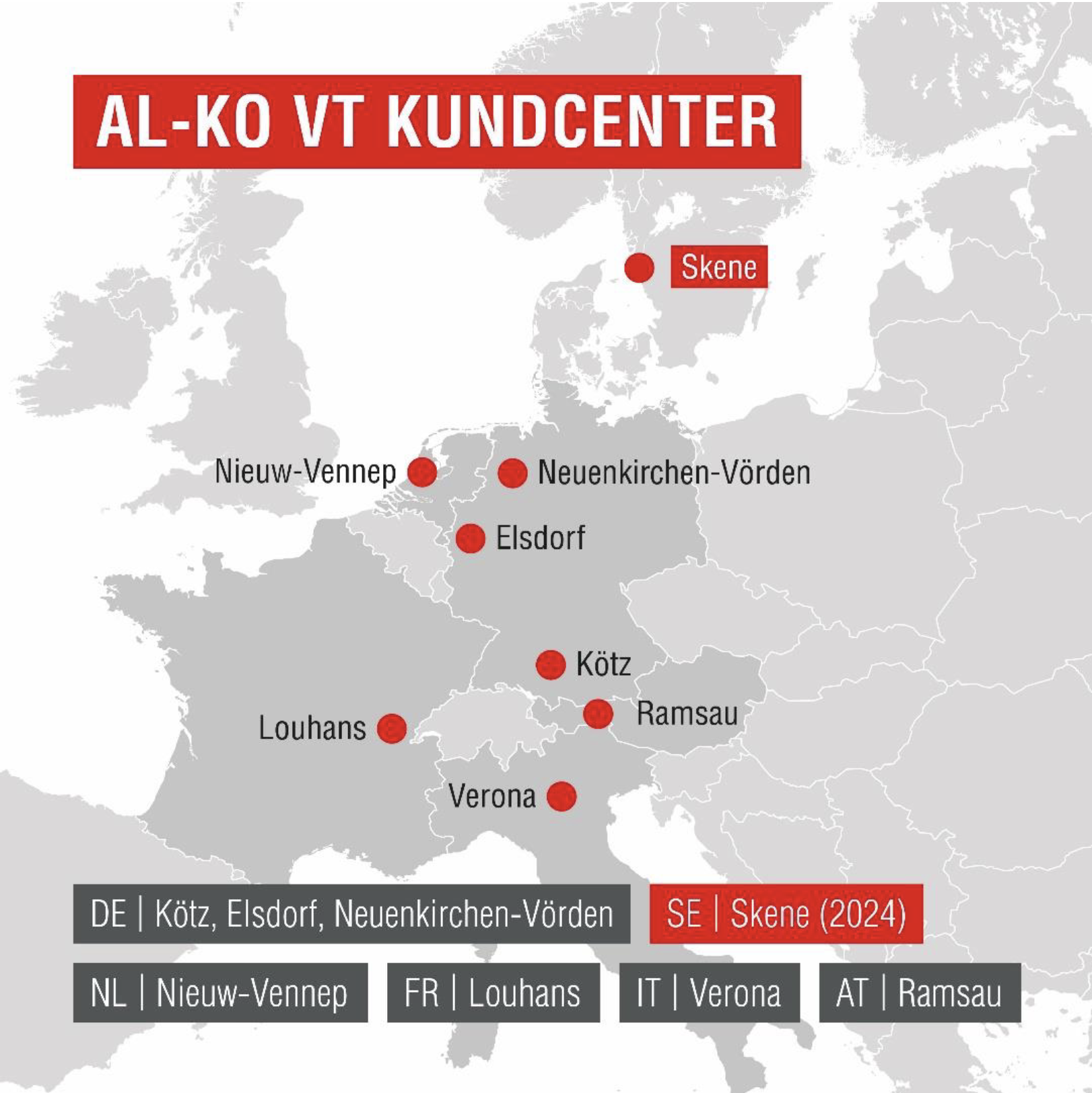 Det planlegges å utvide TCMs eksisterende servicesenter i Skene utenfor Gøteborg til et fullt utstyrt AL-KO VT-kundesenter. Dermed vil AL-KOs europeiske nettverk av kundesentre øke til totalt åtte steder. I dag er det kundesentre i Italia, Frankrike, Østerrike og Benelux, samt på tre steder i Tyskland.