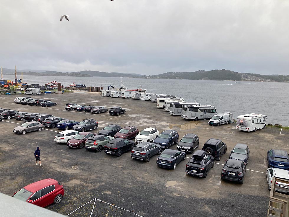 Hvite striper sørger nå for at bilene står parkert med riktig avstand og at personbilene pent og pyntelig stiller seg i andre rekke. Nærmest sjøen har det nå blitt brede og fine plasser som er tydelig oppmerket og reservert for bobiler. Oppmerkingen gjør det lett å overholde firemetersregelen.