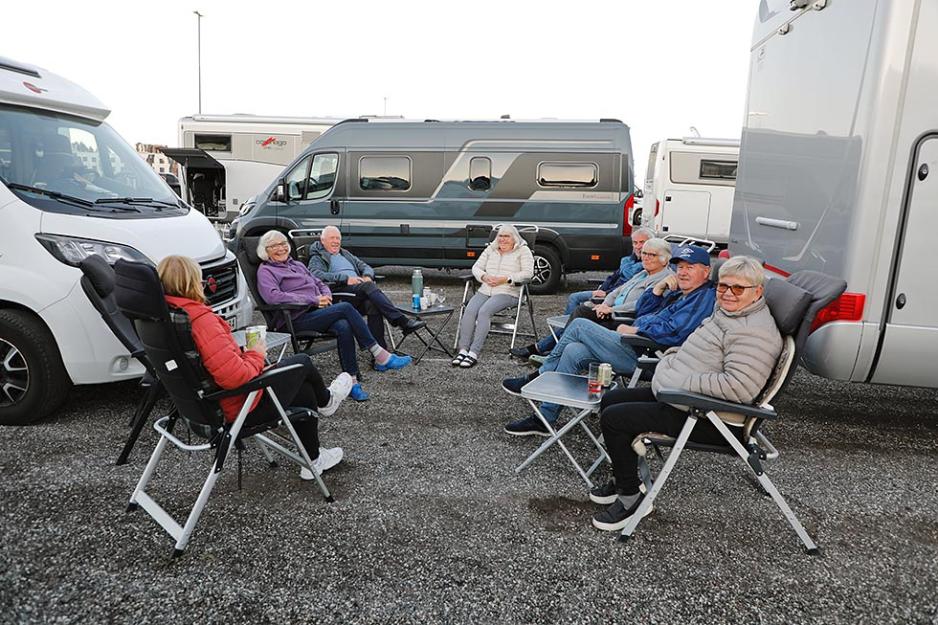 Kvelden før dørene åpner tok Din Fritid en tur på messecampen. Her fant vi blide bobileiere som nøt det fine været utendørs.
