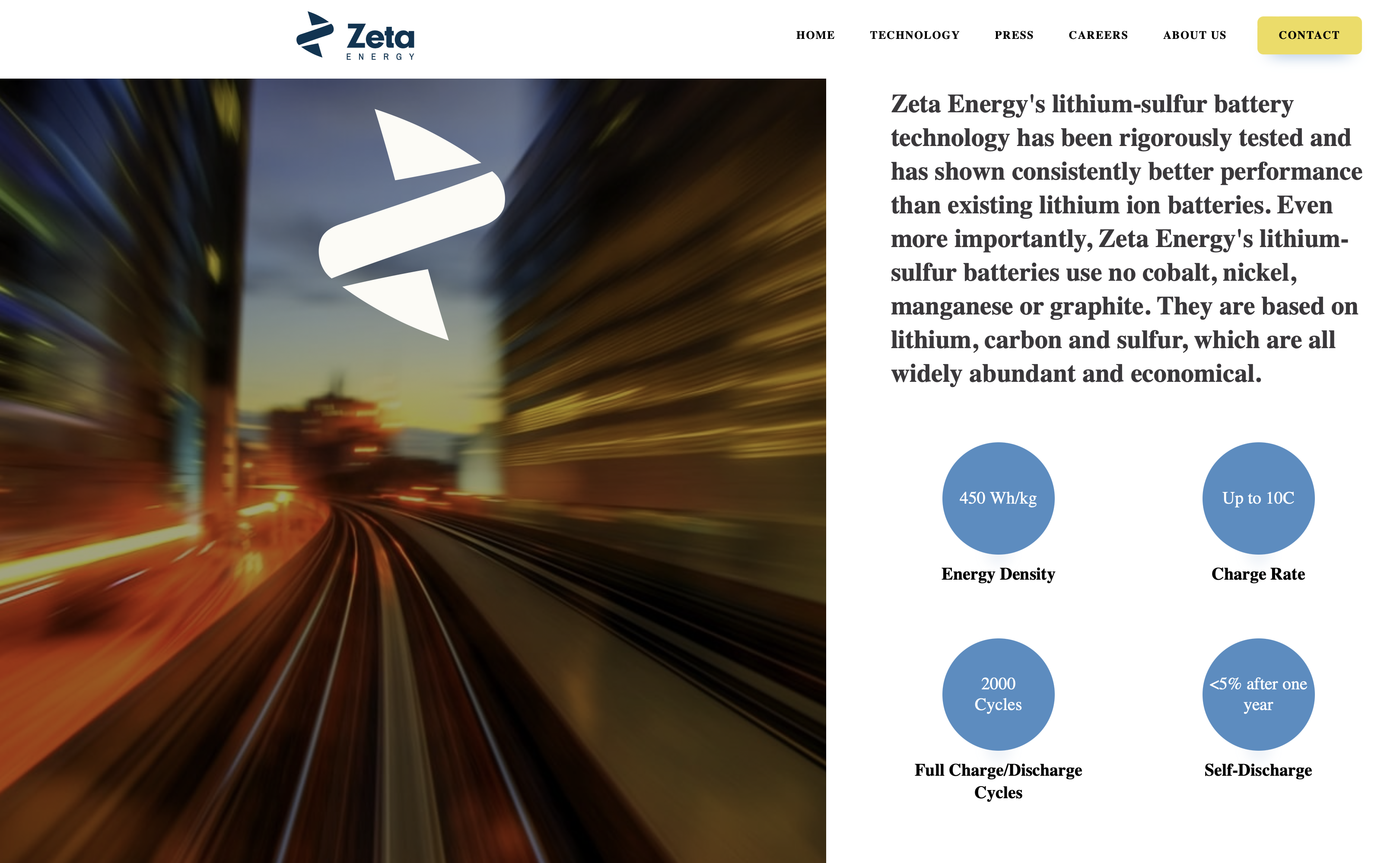 Zeta Energy er et privat amerikansk selskap som fokuserer på å utvikle, kommersialisere og produsere høytytende, sikre og oppladbare batterier som er kostnadseffektive og bærekraftig produsert. Zeta Energy ble grunnlagt i 2014 av Charles Maslin i Houston, Texas, med mål om å utvikle og kommersialisere avanserte litium-svovel-batterier basert på sine egenutviklede karbon-svovel-katoder og 3D-metalliske litium-anoder. Selskapets teknologi har vunnet flere prestisjetunge priser, inkludert fra U.S. Department of Energy ARPA-E- og VTO-programmene samt World Materials Forum. Zeta Energys batterier eliminerer bruken av kritiske materialer som grafitt, kobolt, mangan og nikkel. Selskapet har en omfattende patentportefølje med over seksti patenter og søknader.