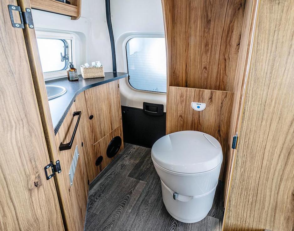 At kjøleskapet er et kompressskap som også drives på strøm er en selvfølge. En lader på 120 A sørger for effektivt påfyll på batteriet. Løsningen gir anslagsvis en times koketid på induksjonstoppen, uten å måtte være tilkoblet strøm. Det er selvsagt også dieselvarmer som standard. Batteri, elektronikk og inverter er plassert i gassrommet, der vil du jo aldri trenge å putte noen gassflasker med en slik løsning.